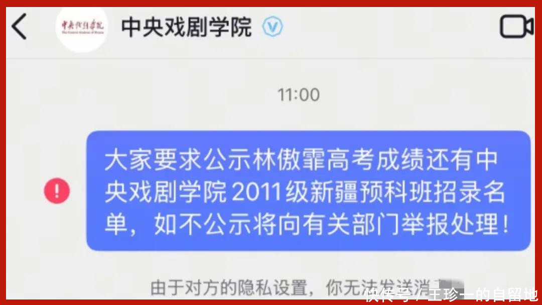 为求得真相,有网友私信中戏,希望中戏公开林傲霏的高考成绩,以及2011年新疆预科班的招录名单。