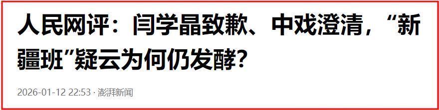 央媒人民网发布了名为《中戏已澄清,“新疆班”疑云为何仍发酵?》的文章。
